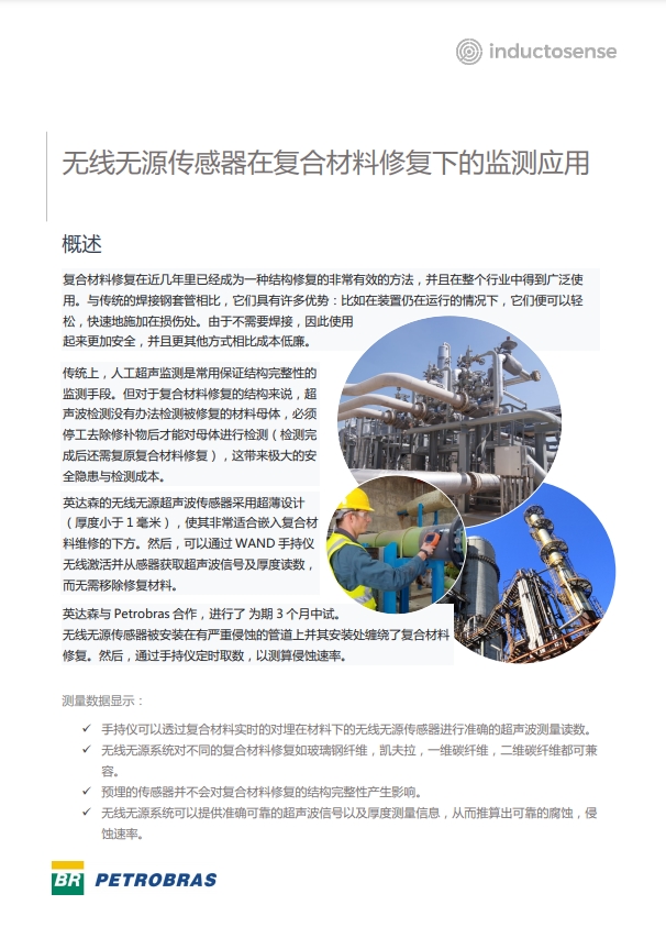 复合材料经常被用来修复管道或容器,但因为复合材料对超声波的衰减,现有的超声波技术很难透过复合材料去监测被修复的母材。因为复合材料只是加固了结构并没有阻止腐蚀/侵蚀的发生,母材可能继续被腐蚀/侵蚀,所以需要不定期的对母材进行厚度评估。在传统的检测技术下,只能破坏复合材料后再对其进行检查评估,耗时、耗利、检查成本高。